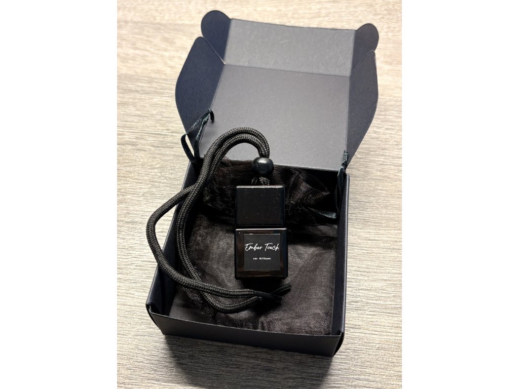 Designový difuzér do auta v elegantním černém skle s minimalistickou etiketou je stylovým doplňkem i praktickým parťákem na cestách.